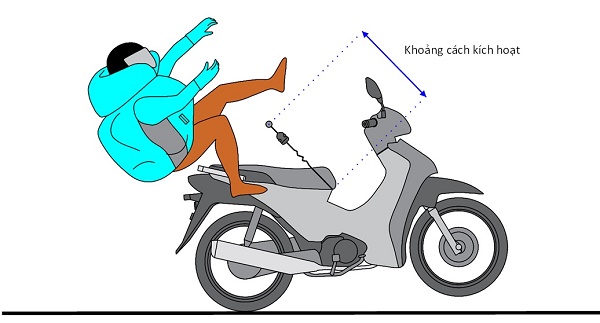 Áo sẽ được kích hoạt khi khoảng cách từ người điều khiển đến xe vượt quá “khoảng cách kích hoạt”, tức là khi có va chạm xảy ra. Khi đó, bình khí sẽ được mở và giải phóng khí CO2 vào túi khí, làm cho nó phồng lên tức thì.