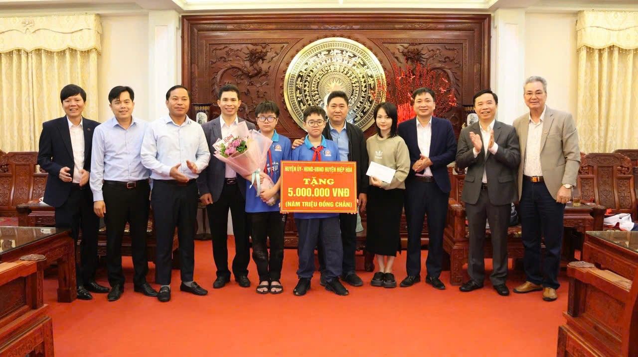 Lãnh đạo Huyện ủy- HĐND- UBND huyện thưởng đột xuất cho 2 em học sinh trường THCS Đức Thắng đạt giải nhì