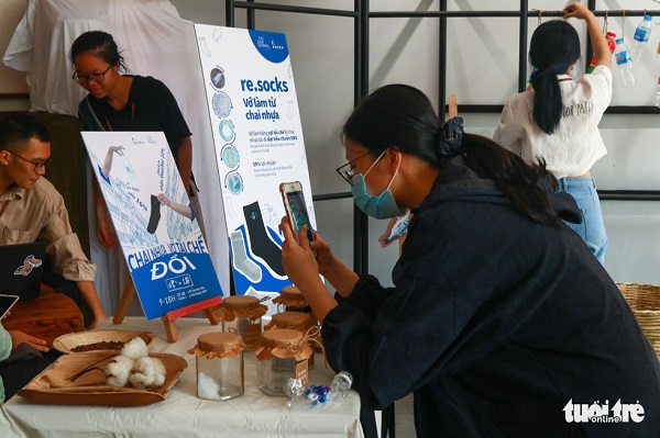 Nguyễn Minh Nguyệt, sinh viên Trường ĐH Khoa học tự nhiên, chia sẻ: "Đây là một hoạt động thiết thực đối với việc bảo vệ môi trường. Việc dùng chai nhựa tái chế vớ và những đồ dùng trong cuộc sống hằng ngày là một điều mới lạ, mình tin sẽ được đông đảo người dùng tiếp cận.