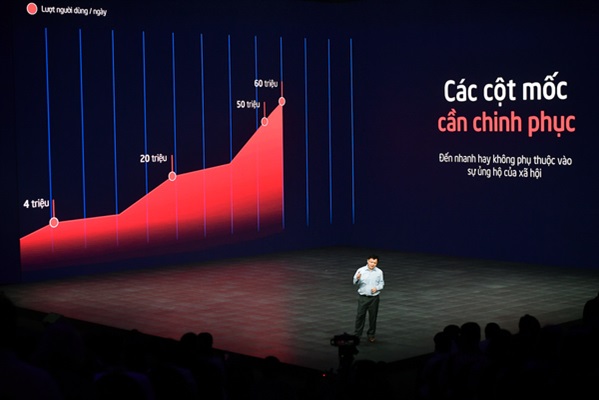 Theo ông Dương Vi Khoa - Giám đốc Chiến lược Gapo, mục tiêu của Gapo là đạt 3 triệu người dùng vào năm 2020 và hướng đến mục tiêu 50 triệu người dùng vào năm 2021. Ảnh: Trọng Đạt