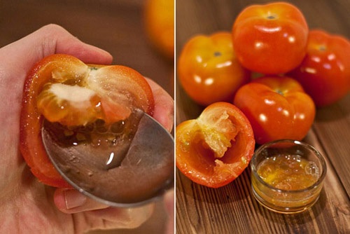 - Dùng 1 quả cà chua bỏ hạt, ép lấy nước rồi trộn với 1 thìa mật ong. Đánh đều hỗn hợp, sau đó thoa nhẹ nhàng lên mặt, để khoảng 30 phút và rửa mặt thật sạch.