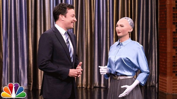 Sophia đã có mặt trên sân khấu chương trình "The Tonight Show" để trò chuyện cùng người dẫn chương trình kiêm diễn viên hài Jimmy Fallon. Robot sở hữu dáng vẻ của một phụ nữ này khiến khán giả xem chương trình có những cảm xúc lẫn lộn, vừa kinh ngạc, thích thú với khả năng đối đáp linh hoạt, vừa e sợ, khó chịu trước các tuyên bố "động trời" của nó.
