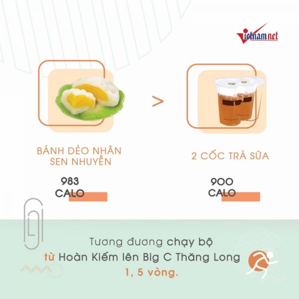 Con gái ai cũng mê trà sữa, và thực tế bạn có uống no nê 2 cốc thì cũng chưa sánh bằng việc ăn 1 chiếc bánh dẻo nhân sen nhuyễn. Gần 1000 calo này chỉ có cách chạy bộ từ Hoàn Kiếm lên tận… Big C Thăng Long mới “tiêu hóa” hết!