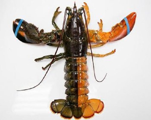 Đến tháng 7/2015, cũng tại Mỹ một ngư dân cũng đã bắt được một con tôm hùm hai màu. Thân con tôm có màu sắc nửa cam nửa xám, đối xứng hai màu gần như hoàn hảo ở phần đuôi. Hai càng của nó cũng mang hai màu cam và xám. Hình ảnh của con tôm hùm này được ghi lại tại Chợ hải sản Pine Point và được một ngư dân mang đến trước đó một tuần.