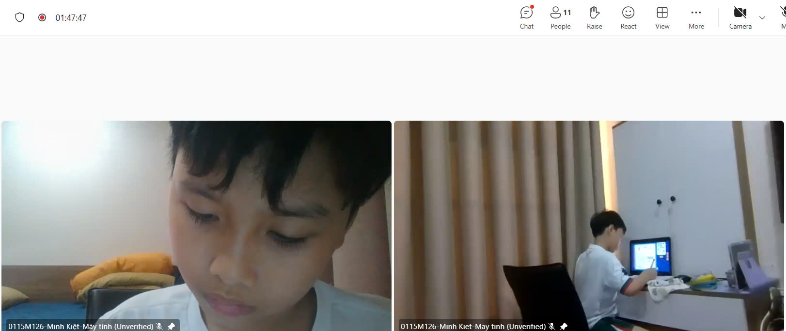 Ảnh chụp màn hình camera giám sát thí sinh làm bài thi trực tuyến