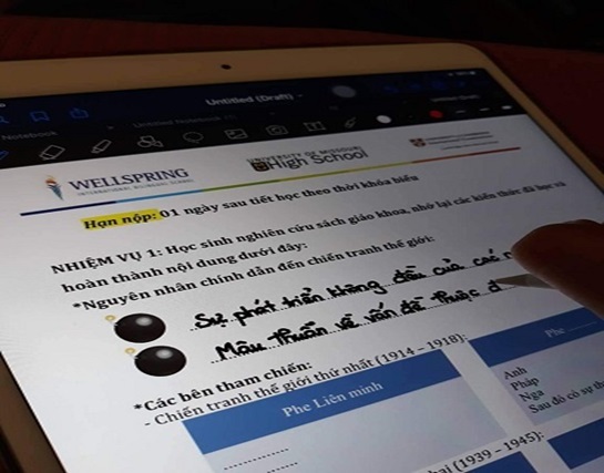 Trường Phổ thông Song ngữ Liên cấp Wellspring cũng áp dụng học online ở cả ba cấp trong thời gian nghỉ học một tuần từ ngày 3/2. Các kênh online học sinh Wellspring đang dùng gồm Google Classroom, Google site, Class Dojo, Microsoft Office 365...