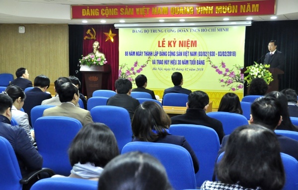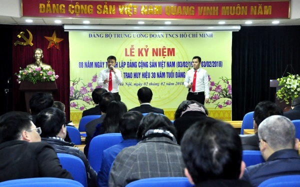 Hoà chung trong không khí phấn khởi của toàn Đảng, toàn quân, toàn dân và tuổi trả cả nước chào mừng kỷ niệm 88 năm ngày thành lập Đảng Cộng sản Việt Nam (3/02/1930 - 3/02/2018) và chuẩn bị đón mừng năm mới xuân Mậu Tuất 2018. Sáng ngày 02/02, tại Hà Nội, Đảng ủy Trung ương Đoàn long trọng tổ chức Lễ Kỷ niệm 88 năm ngày thành lập Đảng và trao Huy hiệu 30 năm tuổi Đảng.