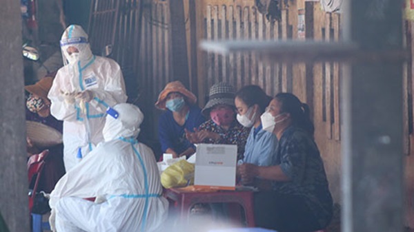 2 nữ tình ngueyẹn viên hỗ trợ đội y tế lấy mẫu test PCR ngay tại chợ