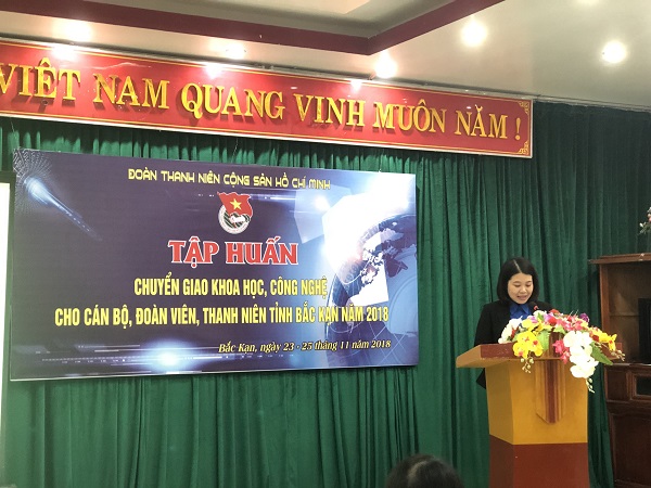 Phát biểu tại lễ khai mạc đồng chí Nguyễn Thị Huế, Phó Bí thư Tỉnh đoàn, Phó Chủ tịch Hội LHTN tỉnh Bắc Kạn trân trọng cảm ơn lãnh đạo Trung tâm Phát triển Khoa học, Công nghệ và Tài năng trẻ đã tạo điều kiện cho đoàn viên, thanh niên tỉnh Bắc Kạn được tham gia lớp tập huấn, rất bổ ích, thiết thực và mong muốn toàn thể học viên phát huy tinh thần học tập nghiêm túc, chú ý lắng nghe và tương tác với báo cáo viên để được giải đáp, hướng dẫn những công nghệ hay, mới, bổ ích áp dụng vào thực tế cuộc sống; bên cạnh đó tập trung trao đổi, thảo luận nhóm để cùng chia sẻ kinh nghiệm phát triển kinh tế, tháo gỡ các khó khăn trong quá trình lập thân, lập nghiệp của bản thân. Đồng chí cũng hy vọng với các chuyên đề rất thiết thực của lớp tập huấn các học viên sẽ tích lũy được kiến thức bổ ích truyền đạt lại cho những đoàn viên, thanh niên trên địa bàn để cùng nhau phát triển kinh tế làm giầu trên chính quê hương nơi mình sinh ra và lớn lên.