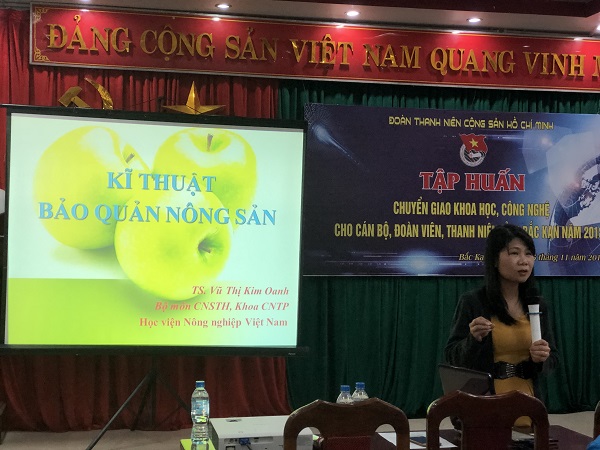 Ngay sau khai mạc lớp tập huấn TS. Vũ Thị Kim Oanh, Khoa Công nghệ sau thu hoạch thuộc Học viện Nông nghiệp Việt Nam sẽ lên chia sẻ với học viên lớp tập huấn về cách bảo quản nông sản thực phẩm sau thu hoạch, đặc biệt tiến sĩ đã hướng dẫn rất chi tiết, cụ thể về cách bảo quản các sản phẩm nông sản thế mạnh của tại Bắc Kạn như: Quýt, hồng giòn, bí xanh và các cây rau ăn lá. Bên cạnh đó, với kinh nghiêm đã từng trực tiếp hướng dẫn nhiều địa phương cách bảo quản sản phẩm nông sản thế mạnh của từng vùng, miền đồng chí đã nhiệt tình hướng dẫn, chia sẻ kinh nghiệm tích lũy của bản thân để các học viên tham khảo thêm cách trồng trọt, bảo quản sản phẩm để vừa mang lại chất lượng dinh dưỡng, vừa mang lại giá trị kinh tế cao cho người trực tiếp sản xuất tại những địa phương có thổ nhưỡng tương tự như tỉnh Bắc Kạn. Đây là một chuyên đề rất hữu ích, thiết thực được đông đảo học viên quan tâm và tương tác, trao đổi sôi nổi, …